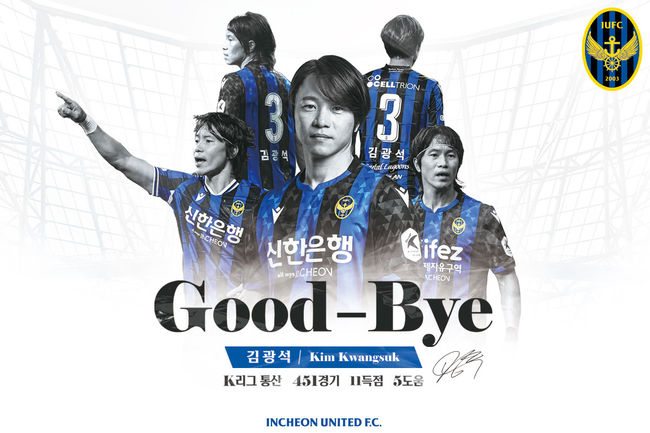 한편, 김광석의 은퇴식은 오는 4월 22일 인천과 수원FC의 K리그 1 8라운드 경기 전에 진행될 예정이다. 구단 전달수 대표이사와 가족, 동료들이 김광석에게 공로패, 액자, 꽃다발 등을 전달하고 그가 인천에서 몸담았던 2년간의 활약 영상이 전광판을 통해 상영될 예정이다.