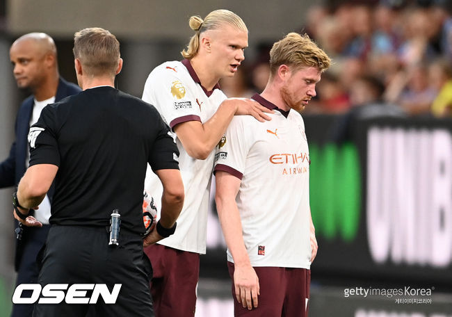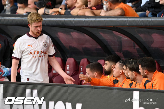 하지만 더 브라위너는 맨시티가 엘링 홀란의 선제골로 1-0으로 앞선 전반 21분 경기장에 멈춰 섰다. 햄스트링 통증을 호소한 것. 결국 의료진과 이야기를 나눈 더 브라위너는 마테오 코바치치와 교체됐다.