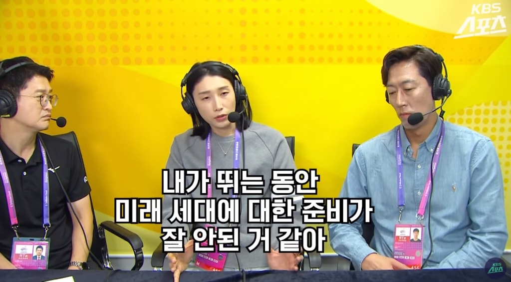 김 위원은 "내가 뛰는 동안 미래 세대에 대한 준비가 제대로 안 된 것 같다"며 "그 준비를 미리 잘했으면 (최근 아시안게임에서) 부진한 상황이 발생하지 않았을 터라는 아쉬움이 있다"고 밝혔다.