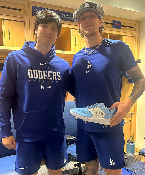 일본 매체 디 앤스워는 8일 "오타니와 23세 마이너리거의 투 샷이 주목받고 있다"고 보도했다. 사진 속 장소는 LA 다저스의 클럽하우스. 오타니와 윌리엄스는 카메라를 응시하며 우월한 피지컬을 뽐냈다.