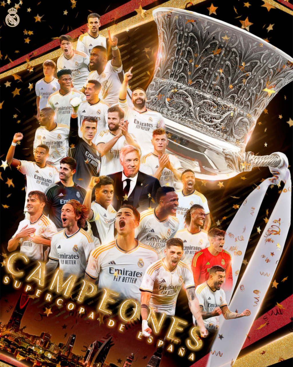 레알 마드리드는 15일(한국시간) 사우디아라비아 리야드의 알 아왈 파크에서 열린 2023~2024시즌 수페르 코파(슈퍼컵) 결승에서 FC바르셀로나를 4-1로 이기며 우승을 차지했다.