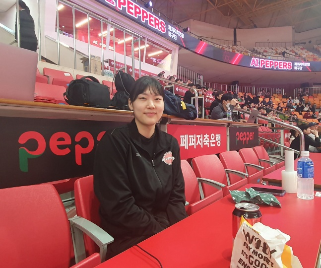 지난 19일 홈팀 페퍼저축은행과 원정팀 현대건설의 2023~2024 V리그 여자부 4라운드 마지막 경기가 열린 페퍼스타디움 관중석에는 반가운 얼굴이 보였다. 지난달 29일 오른쪽 무릎 외측 대퇴골의 연골 손상 및 연골 하골 손상으로 반월상연골을 제거하는 수술을 받은 염어르헝이었다. 이날은 어르헝이 재활만 하다가 처음으로 경기장을 방문한 날이었다. 경기 시작 1시간 20분 전부터 찾아 관중석에 앉자, 몸을 풀러 나오던 페퍼저축은행 선수들도 미소와 함께 어르헝을 반겼다.