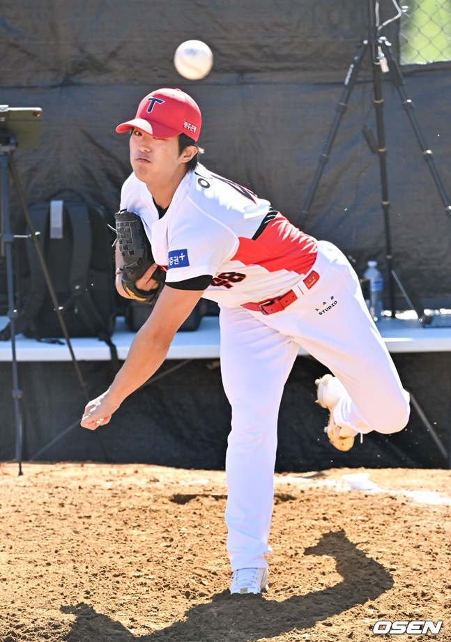 지난 5일 호주 캔버라 나라분다 볼파크에서 불펜 투구를 한 뒤 취재진과 만난 이의리는 "지난해는 성적이 아쉽기도 했지만 스스로에게 조금 관대했다면 어땠을까하는 생각이 든다"며 "안 좋은 점을 너무 신경쓰다보니 오히려 더 안 좋은 결과가 나왔다"고 말했다.