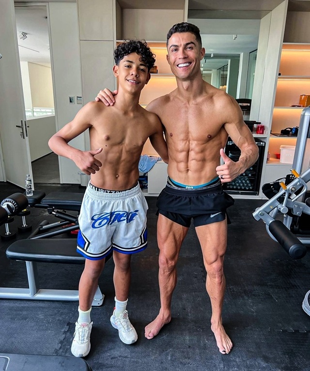 부전자전이다. 슈퍼스타 크리스티아누 호날두(알 나스르)와 함께 그의 아들 호날두 주니어도 엄청난 식스팩을 자랑했다.