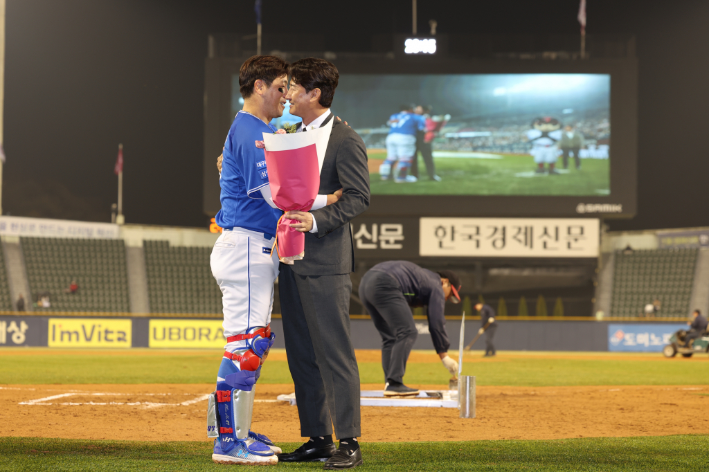 한국 야구를 대표하는 레전드 안방마님 강민호(39·삼성 라이온즈)가 KBO 리그 개인 통산 최다 출장이라는 새 역사를 썼다. 그리고 강민호는 아내를 향해 감사 인사를 건넸다.
