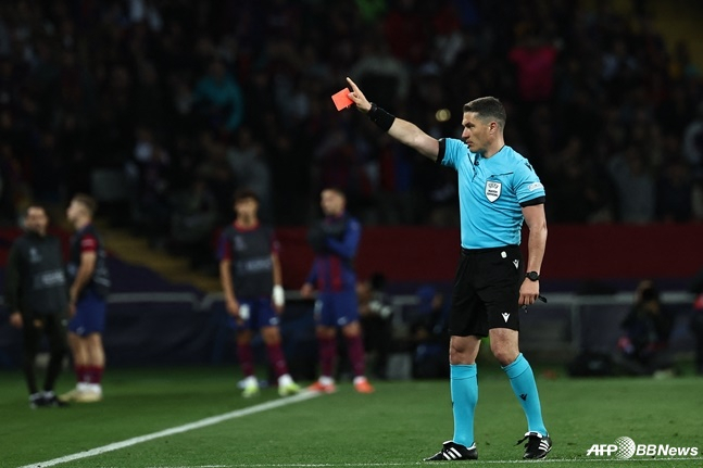 하지만 전반 29분 바르셀로나 센터백 아라우호가 퇴장을 당하면서 분위기가 바뀌었다. 바르콜라가 박스 안으로 치고 들어갈 때 아라우호에 밀려 넘어졌고 주심은 바로 레드카드를 꺼내 들었다.