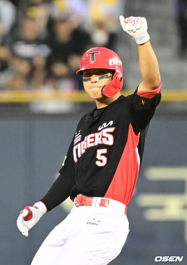 7회 초 1사 1, 2루 위기에서 LG 박명근도 김도영에게 변화구로 접근했다. 초구 커브가 스트라이크로 잡혔고 2구째도 커브가 들어왔다. 그 순간 김도영은 번트로 자세를 바꿔 3루 쪽으로 공을 굴린 뒤 1루를 향해 뒤도 돌아보지 않고 뛰었다.