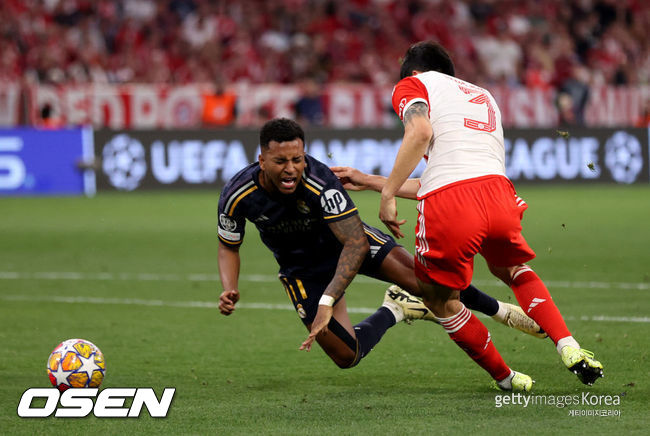 뮌헨의 승리가 가까웠던 순간, 다시 김민재의 치명적인 실수가 나왔다. 그는 박스 안에서 위협적으로 공을 소유해 달려들어가던 호드리구를 과하게 잡아 넘어뜨렸고 주심은 지체 없이 페널티 킥을 선언했다. 키커로 나선 비니시우스가 침착하게 골을 만들었다.