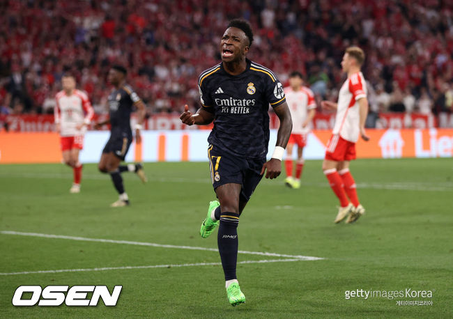 경기 초반 홈팀 뮌헨이 더 공격적으로 나섰지만, 선제골은 레알이 터뜨렸다. 전반 24분 크로스가 전방을 향해 침투 패스를 찔렀고 튀어나온 김민재를 무너뜨린 비니시우스가 빠르게 박스로 쇄도했고 비니시우스는 순식간에 일대일 찬스를 맞았다. 그는 곧바로 슈팅, 선제골을 뽑아냈다.