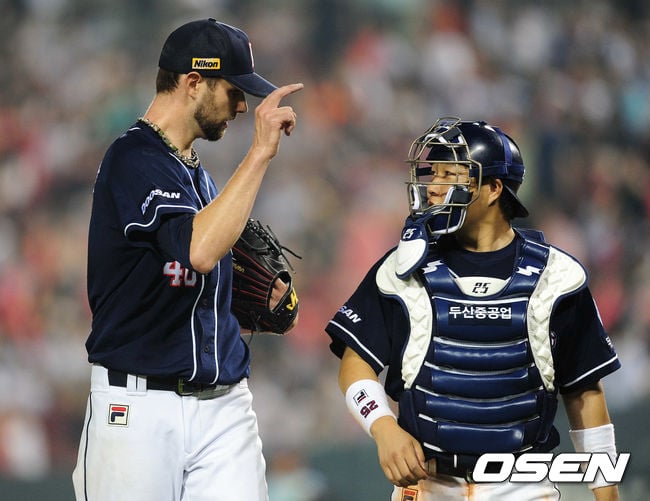 또 “양의지 선수는 영어를 못하고 나는 한국말을 못하는데 서로 야구선수로서 느낌이 있었던 것 같다. 서로를 늘 관찰하며 스타일을 파악하며 2~3달 정도 만에 잘 맞기 시작했다”고 말했다. 이어 “양의지 선수를 만난 건 행운이었다. 이 느낌을 설명할 수 있는 말이 없다. 그냥 형제”라고 말했다.