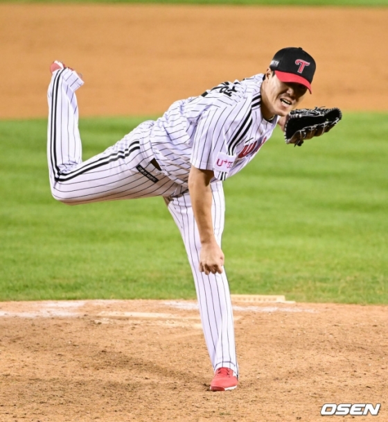이어 후속 강승호를 상대해 4구째 좌중간 안타를 허용한 김진성. 2아웃까지 잘 잡았으나 1, 2루 실점 위기에 몰린 김진성이었다. 총 투구수는 14개. 여기서 LG는 김진성을 내리는 대신 클로저 유영찬을 올렸다. 유영찬은 김재환을 스트라이크아웃 낫아웃 처리한 뒤 9회에도 마운드에 올라 두산 타선을 삼자 범퇴로 요리, 3점 차 리드를 잘 지켜냈다.