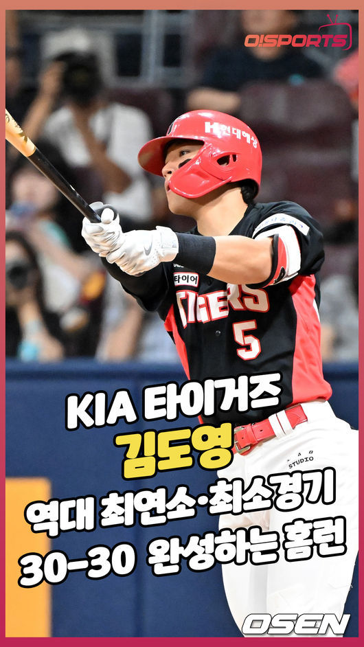 KIA는 15일 서울 고척스카이돔에서 열린 ‘2024 신한은행 SOL Bank KBO리그’ 키움 히어로즈와의 경기에서 12-1로 승리했다. 김도영은 헤이수스를 상대로 투런홈런을 터뜨리며 마침내 역대 9번째이자 최연소 30홈런-30도루를 달성했다.