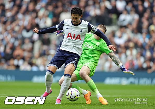 기다려온 손흥민이 드디어 터졌다. 전반 25분 손흥민이 골키퍼 픽포드를 끝까지 압박했다. 당황한 픽포드가 실수를 했고 공을 빼앗겼다. 손흥민이 빈 골대에 슈팅하며 시즌 첫 골을 터트렸다. 토트넘이 2-0으로 승기를 잡았다.