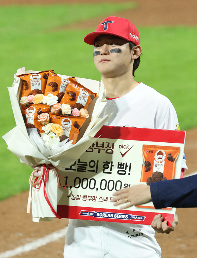 '2024 KBO 포스트시즌 한국시리즈 2차전' KIA-삼성전이 23일 광주-기아챔피언스필드에서 열렸다. KIA 김도영이 '오늘의 한 빵' 수상 후 포토타임을 갖고 있다. 독자들의 PICK! 동서와 갈등→파혼 2번 아내..."조카는 남편 아이" 의심 충격 '고려대 얼짱' 걸그룹 멤버, 돌연 신내림..."10kg 빠지고 가족 죽는 꿈" "조갑경, 방송서 '아들 불륜' 나 몰라라…벌 받길" 전 며느리 분노 "갑자기 아기집 성장 멈춰"...서동주, 시험관 임신 끝 계류유산