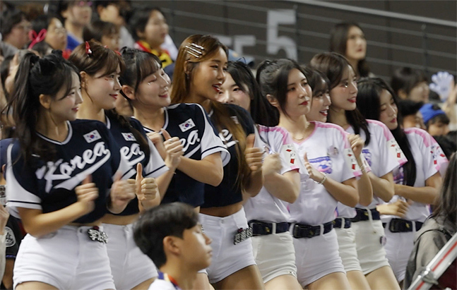 '2024 WBSC 프리미어12' B조 예선 한국-일본전이 15일 대만 타이베이돔에서 열렸다. 대만에 진출해 명성을 떨치고 있는 안지현을 비롯한 치어리더와 배수현이 이끄는 한국 국대 응원단이 삐끼삐끼 댄스를 선보이고 있다. 독자들의 PICK! 동서와 갈등→파혼 2번 아내..."조카는 남편 아이" 의심 충격 "남성 의사가 은밀한 곳 봤잖아" 이혼 선언…산부인과서 난동 "솔로몬도 못 풀어"...쌍둥이 형제와 관계 후 낳은 딸, 친부는 누구? "자기야" 댄스강사 그놈, 여친만 8명?..."교통사고 났어" 2억 뜯었다