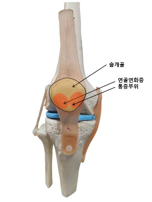 이 질환은 슬개골(무릎뼈)과 대퇴골 사이의 연골이 손상되거나 염증이 생긴 결과로, 연골이 물렁물렁해지는 상태를 말한다. 무릎을 구부릴 때 슬개골이 대퇴골의 레일 위를 제대로 활주하지 못하고 이탈하게 되면, 마치 기차가 탈선하듯이 뼈끼리 부딪히면서 연골이 손상되어 염증이 생긴다. 그래서 이 질환을 ‘슬개-대퇴증후군’이라 부르기도 한다.