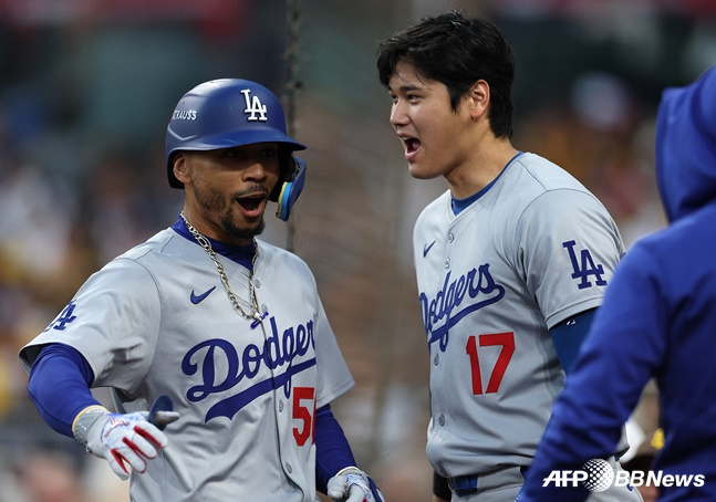 야구계 G.O.A.T(Greatest Of All Time)는 같은 최우수선수(MVP) 출신 대스타가 보기에도 남다른 아우라가 있었다. 무키 베츠(33)가 팀 동료 오타니 쇼헤이(30·이상 LA 다저스)를 향해 엄지 손가락을 치켜세웠다.