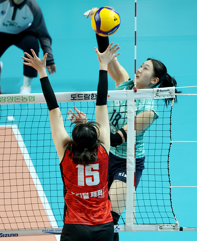 도드람 2024-2025 V리그 여자부 GS칼텍스-페퍼저축은행 경기가 5일 서울 장충체육관에서 열렸다. GS칼텍스 권민지가 페퍼저축은행 박사랑의 블로킹 위로 강스파이크를 날리고 있다. 독자들의 PICK! 100만원도 못 벌던 개그맨..."수입 1000배" 변호사 된 깜짝 근황 "조진웅, 은퇴할 줄 몰랐다…식사 제안도 거절" 정지영 감독이 전한 근황 치어리더 정가예 "폭언·욕설에 병원 치료→활동 중단" 무슨 일? "새벽에 전화, 돈 요구" 김원희, 사생활 털렸다...해킹범이 협박