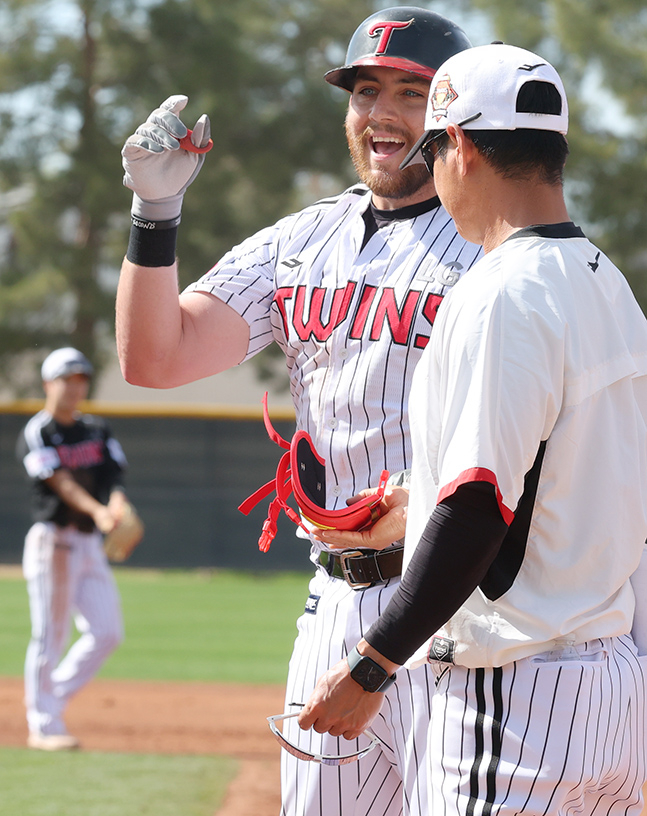 LG 트윈스 선수단이 20일 미국 애리조나주 스코츠데일 인디언스쿨파크 야구장에서 열린 스프링캠프에서 청백전을 진행했다. 백팀 오스틴이 적시타를 날리고 출루한 후 기뻐하고 있다. 독자들의 PICK! "이 선택 쉬웠겠나" 신정환 어쩌다...'사이버 룸살롱' 대표 된 근황 '학폭 피해' 권오중 아들, 목에 유리 박히고 기어다녀...가해자 뻔뻔 거짓말 브아걸 나르샤 남편, 뇌수술 받았다…"호흡기 착용 중" "아내에 남편·딸 있었다" 결혼 후 충격...더 놀라운 진실