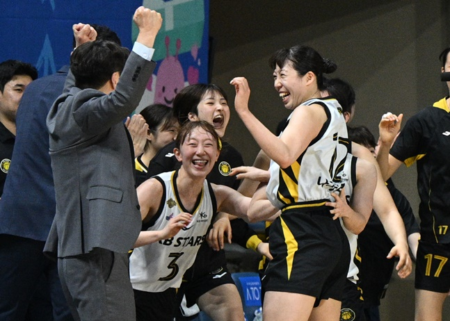 정규리그 4위 KB스타즈는 4일 오후 7시 아산이순신체육관에서 열린 1위 아산 우리은행 우리WON과 하나은행 2024~2025 여자프로농구 플레이오프(5전 3선승제) 2차전에서 58-57 승리를 거뒀다.