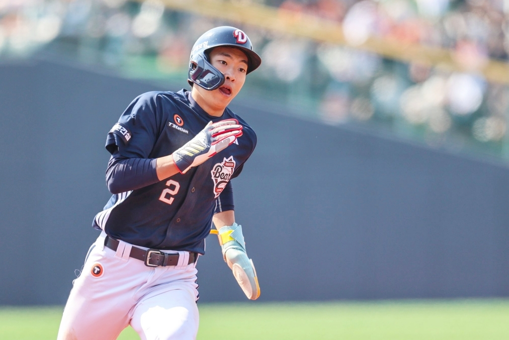 김민석은 1회 선두타자로 첫 타석에 등장했다. 한화 선발 이상규를 상대로 3-1의 유리한 볼카운트에서 5구째 속구(144km)를 공략, 중전 안타를 터트렸다. 이어 김재환의 볼넷 때 2루, 1사 후 케이브의 1루 땅볼 때 3루에 안착한 뒤 강승호 타석 때 포일을 틈타 선취 득점까지 올렸다.