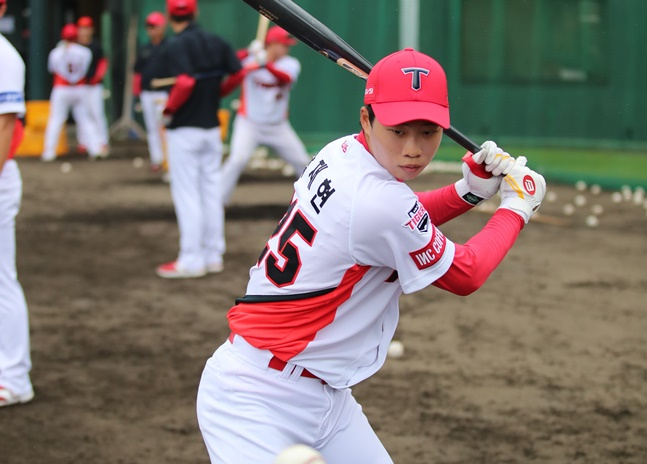 이어 이 감독은 "내야안타도 잘 만들고 좋은 타구도 많이 나오고, 중견수를 보면서 수비하는 것도 상당히 적응력이 빠르다"며 칭찬을 이어갔다. 그는 "처음 마무리캠프 때는 뜬공이 나올 때 뒤로 갔다가 앞으로 와서 뒤로 넘기는 걸 많이 했다. 지금은 엄청 적응을 잘하고 있고, 수비도 좋아졌다고 하더라"고 했다.