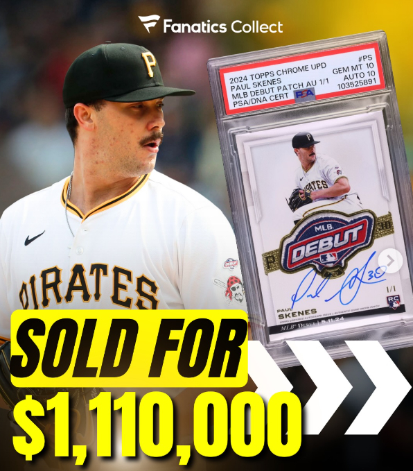 이에 스킨스의 이름이 널리 퍼진 가운데, 그의 야구카드도 주목을 받았다. 특히 그가 빅리그 데뷔전에서 입었던 유니폼에 있던 데뷔 기념 패치가 부착되고 친필 사인이 들어간 루키 카드는 전세계에 하나밖에 없는 물품이었다. 이에 피츠버그 구단은 이 카드를 구하기 위해 30년치 시즌 티켓과 스킨스의 사인 유니폼 2벌, 피츠버그 홈구장 체험, 그리고 스킨스와 만남 등 다양한 이벤트를 걸었다.