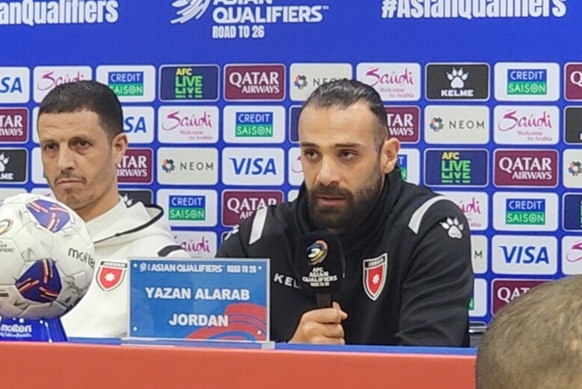 야잔은 야말 셀라미 요르단 대표팀 감독과 함께 24일 수원월드컵경기장에서 2026 국제축구연맹(FIFA) 북중미 월드컵 아시아 3차 예선 B조 8차전 한국전 사전기자회견에 나섰다. FC서울에는 뛰는 만큼 한국전을 앞두고 기자회견 선수로 지명된 야잔은 첫 질문을 받자 "안녕하세요"라는 한국말과 함께 기자회견을 시작했다.
