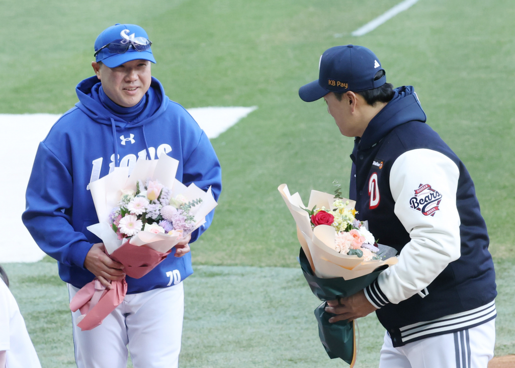 2025 신한 SOL Bank KBO리그 두선 배어스 대 삼성 라이온즈 경기가 28일 잠실야구장에서 열렸다. 두산 홈 개막전에서 꽃다발을 받은 삼성 박진만 감독과 두산 이승엽 감독이 선전을 다짐하고 있다. 독자들의 PICK! "조진웅, 은퇴할 줄 몰랐다…식사 제안도 거절" 정지영 감독이 전한 근황 "수영장서 불륜" 증거 잡은 아내 고소 당했다...간통죄 폐지 후 벌어진 일 "문채원, 2026년 6월 결혼 운"…예언한 무속인 '깜짝' "호스트 클럽서 유산 탕진" 여배우 딸, AV 출연하더니...'절도' 체포