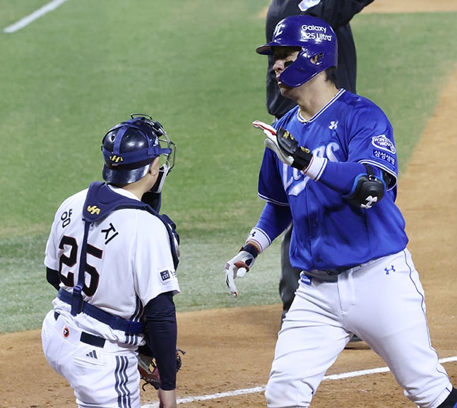 2025 신한 SOL Bank KBO리그 두선 배어스 대 삼성 라이온즈 경기가 28일 잠실야구장에서 열렸다. 삼성 강민호가 7회초 두산 선발 콜어빈을 상대로 솔로포를 날리고 홈인하고 있다. 그러나 비디오 판독끝에 2루타로 정정됐다. 독자들의 PICK! "'음주 뺑소니' 지상렬이 대리운전 모델?" 26년 전 사건 파묘 "남친에 4억 뜯겨" 여배우 충격에...은둔 생활→고깃집 서빙 "남경주, 애처가·딸바보였는데"…성폭행 혐의 '충격' 한고은, '7년째 무직' 남편과 부부싸움…"일주일 한번씩 다퉈"