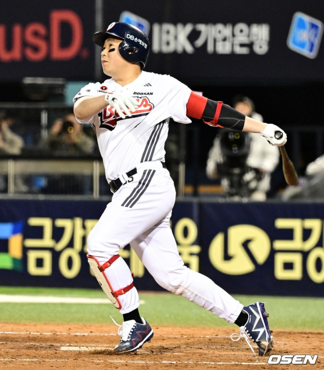 두산도 곧바로 한 점을 만회했다. 1회말 선두타자 정수빈이 우익수 키를 넘기는 2루타를 때려냈고 양의지가 좌전 안타로 가볍게 한 점을 만회했다. 하지만 문동주도 양석환과 강승호를 연속 삼진으로 돌려세우며 위기를 넘겼다.