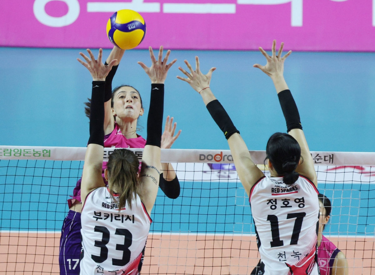 '도드람 2024~2025 V리그' 여자부 챔피언결정전 5차전 흥국생명 대 정관장 경기가 8일 인천 삼산월드체육관에서 열렸다. 흥국생명 투트쿠가 정관장 부키리치, 정호영의 블로킹 위로 강스파이크를 날리고 있다. 독자들의 PICK! 16살 아들 절친과 성관계한 시장…친동생도 미성년 성범죄자 '폐암 수술' 이혜영, 후유증에 눈 퉁퉁..."건강 회복이 목표" 장윤정 "어머니 은행계좌 돈 다 털렸다" 충격...무슨 일? "살아있냐"…삼전·하닉에 결혼자금 3억 몰빵 공무원 근황