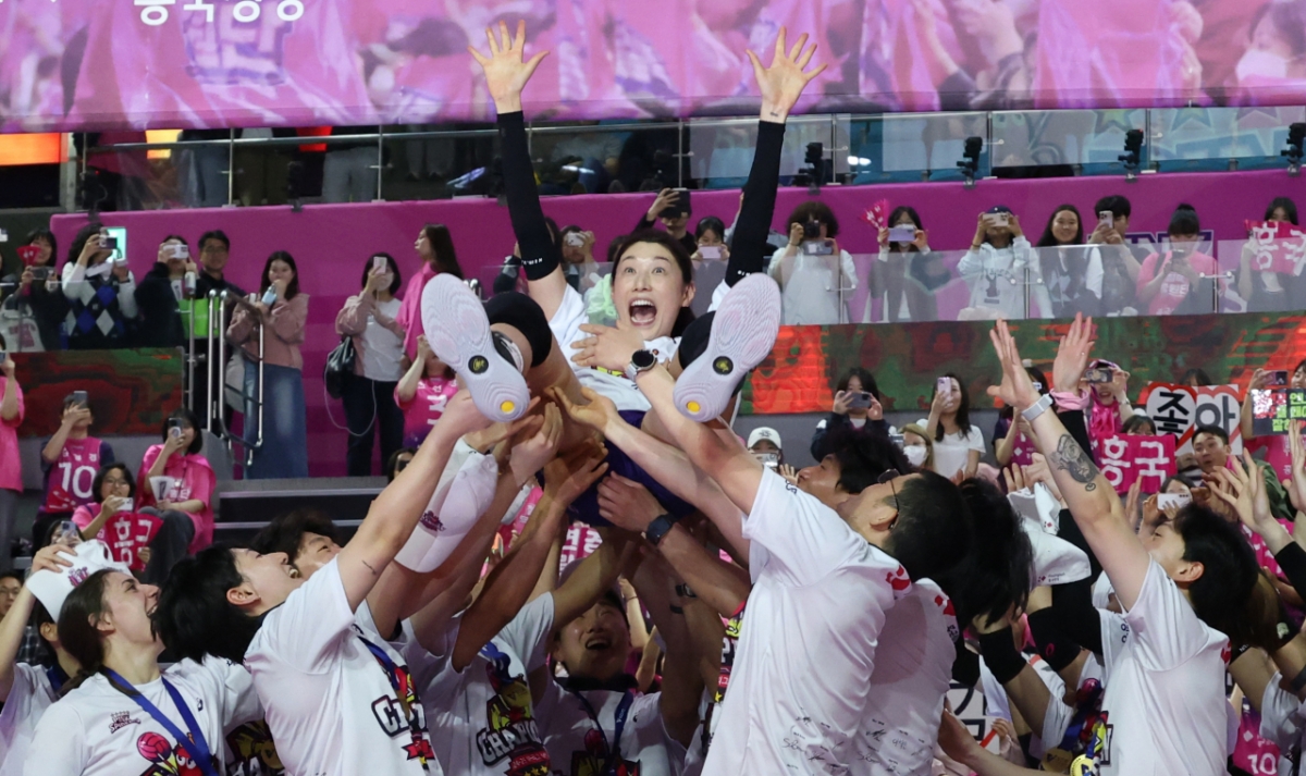 '도드람 2024~2025 V리그' 여자부 챔피언결정전 5차전 흥국생명 대 정관장 경기가 8일 인천 삼산월드체육관에서 열렸다. 흥국생명이 우승을 차지한 후 시상대에서 헹가래를 받고 있다. 독자들의 PICK! "몇 명이랑 잤나 세어 보자" 장항준 19금 발언 파묘 "자궁에 젓가락 꽂히는 느낌" 김지민, 시험관 시술 이유 밝혔다 "시선 강탈 미모" WBC 한일전 카메라에 4번 잡힌 여성, 누구? "사랑해, 뽀뽀 쪽" 은퇴한 남편 녹음파일, 딸 결혼 앞두고