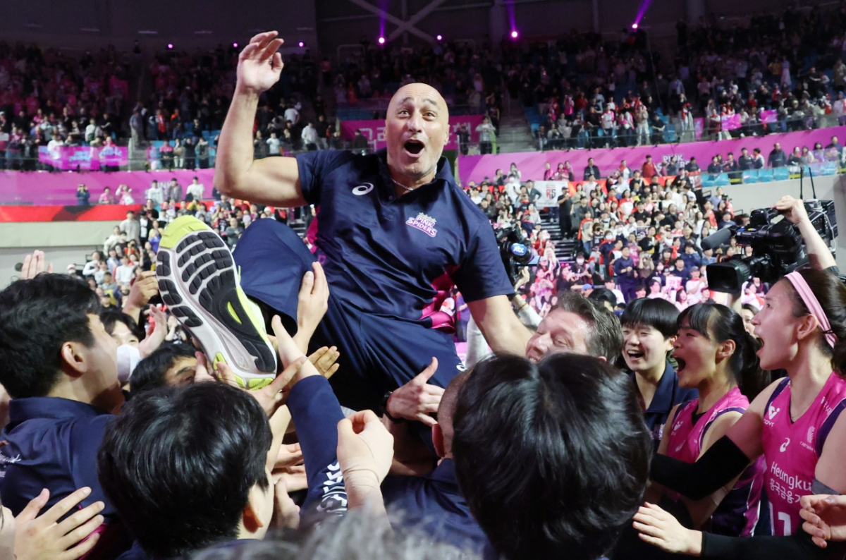 '도드람 2024~2025 V리그' 여자부 챔피언결정전 5차전 흥국생명 대 정관장 경기가 8일 인천 삼산월드체육관에서 열렸다. 흥국생명이 정관장에 3승2로 승리하며 우승을 차지했다. 훙국생명 선수단이 아본단자 감독을 헹가래치고 있다. 독자들의 PICK! 100만원도 못 벌던 개그맨..."수입 1000배" 변호사 된 깜짝 근황 "제수씨와 잠자리를?" 초강수 질문…'친자확인' 남편, 끝내 결백 입증 "조진웅, 은퇴할 줄 몰랐다…식사 제안도 거절" 정지영 감독이 전한 근황 치어리더 정가예 "폭언·욕설에 병원 치료→활동 중단" 무슨 일?