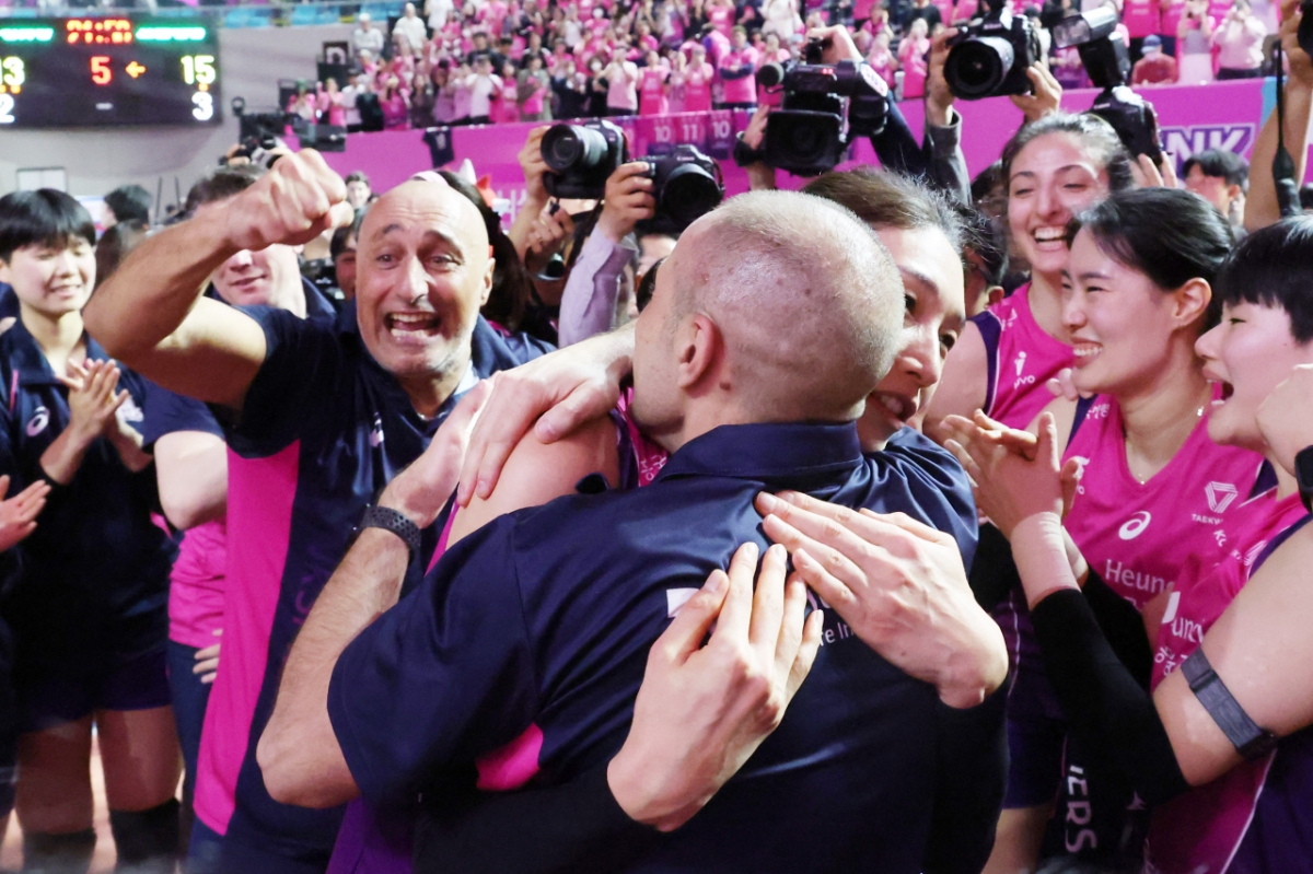 '도드람 2024~2025 V리그' 여자부 챔피언결정전 5차전 흥국생명 대 정관장 경기가 8일 인천 삼산월드체육관에서 열렸다. 흥국생명 김연경이 우승을 확정한 후, 코칭 스태프와 포옹하고 있다. 독자들의 PICK! "조진웅, 은퇴할 줄 몰랐다…식사 제안도 거절" 정지영 감독이 전한 근황 "수영장서 불륜" 증거 잡은 아내 고소 당했다...간통죄 폐지 후 벌어진 일 "문채원, 2026년 6월 결혼 운"…예언한 무속인 '깜짝' "호스트 클럽서 유산 탕진" 여배우 딸, AV 출연하더니...'절도' 체포