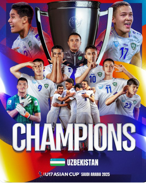우즈벡은 21일(한국시간) 사우디아라비아 타이프의 킹 파드 스포츠 시티 스타디움에서 열린 '2025 아시아축구연맹(AFC) 17세 이하(U-17) 아시안컵' 결승에서 사우디를 2-0으로 꺾었다.