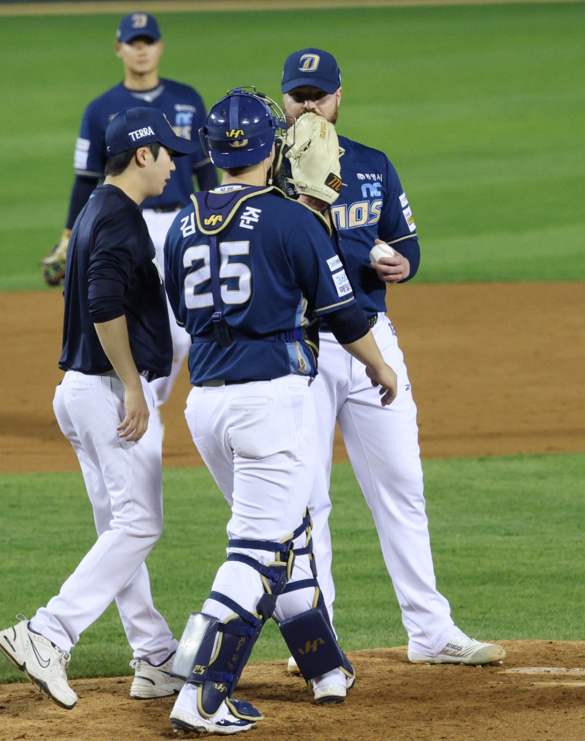 2025 신한 SOL Bank KBO리그 LG 트윈스 대 NC 다이노스 경기가 23일 잠실야구장에서 열렸다. NC 선발 로건이 흔들리는 모습을 보이자 포수 김형준이 마운드로 가 진정시키고 있다. 독자들의 PICK! "옆방서 불륜" 남편의 내연녀는 '엄마'...여배우, 20년 절연 고백 '40억 건물주' 이해인 "월이자 1200만원·공실 6개...무서워" "'음주 뺑소니' 지상렬이 대리운전 모델?" 26년 전 사건 파묘 "남친에 4억 뜯겨" 여배우 충격에...은둔 생활→고깃집 서빙
