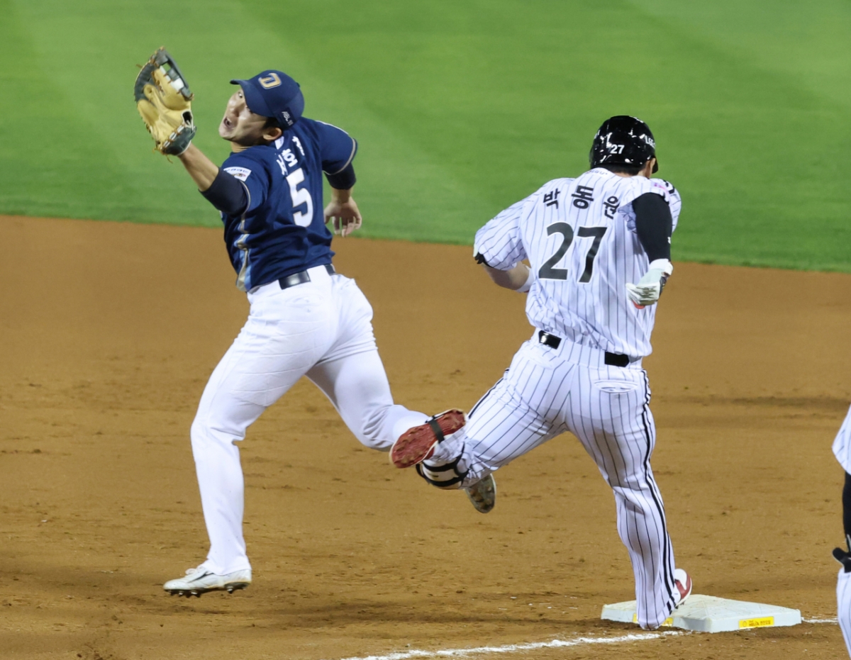 2025 신한 SOL Bank KBO리그 LG 트윈스 대 NC 다이노스 경기가 23일 잠실야구장에서 열렸다. LG 박동원이 5회말 무사 만루에서 선제 1타점 내야땅볼을 날리고 전력질주해 병살을 모면하고 있다. NC 1루수는 서호철. 독자들의 PICK! "삶 끝내려 했는데" 박나래 주사이모, 얼굴 공개 이어 심경 고백 "네 몸 확인하겠다" 덮친 기획사 대표...고백한 여배우 "ATM 되기 싫다" 집 나간 남편...이혼 뒤엔 "양육비 줄여줘" 장나라 측 "관계자 사망? 지난해 결별한 전 소속사…관련 없다"