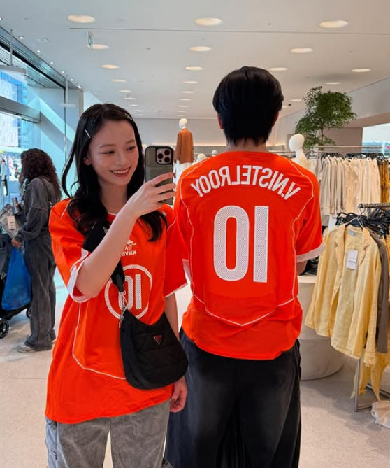 사진 속 나츠키는 남편 우에다와 함께 네덜란드 국왕탄생일은 맞아 외출에 나섰다. 둘은 네덜란드 축구 전설 루드 반 니스텔루이의 유니폼을 입고 축제를 즐기고 있다.