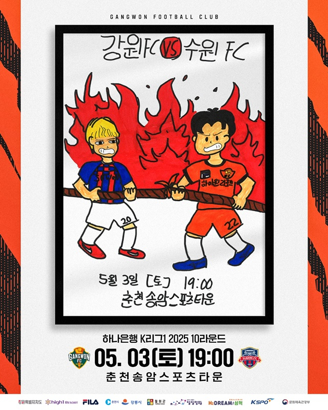 장외 행사장에는 다양한 체험 부스가 팬들을 맞는다. 강원FC는 어린이날을 기념해 '대원당과 함께하는 강원FC 사생대회'를 연다. 접수는 현장에서 초등학생 이하 어린이 팬을 대상으로 선착순 100명까지 가능하다. 수상작은 다음달 11일 김천상무전에서 시상할 예정이다. '봄 담은 산채' 식사권과 '대원당' 상품권을 받을 수 있는 축구 게임 '퍼펙트 키커'와 나만의 응원 피켓 만들기 등 체험 이벤트도 준비됐다. 선수단을 가까이에서 만날 수 있는 팬사인회도 열린다.