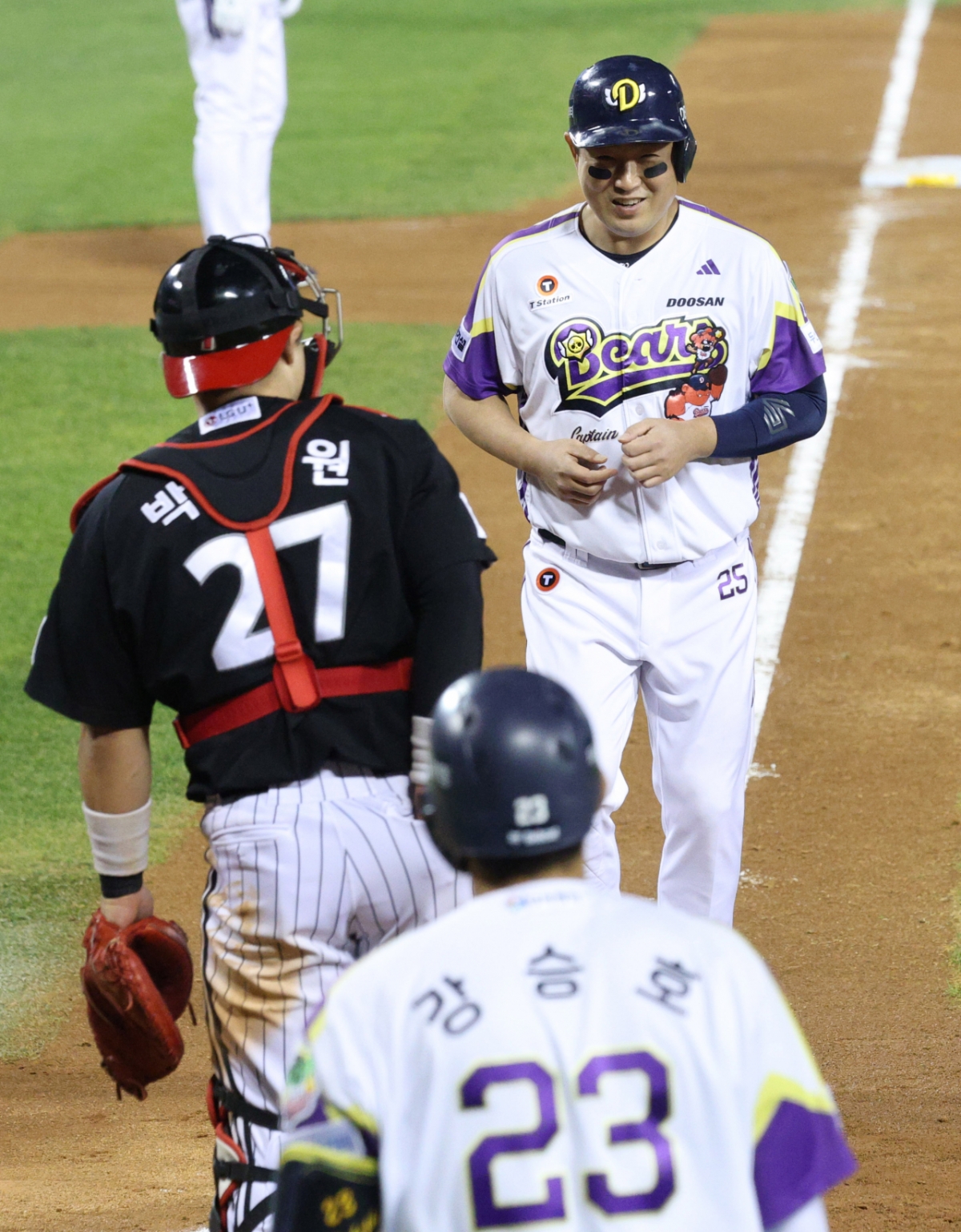 2025 신한 SOL Bank KBO리그 두산 베어스 대 LG 트윈스 경기가 7일 잠실야구장에서 열렸다. 두산 6회말 무사 만루에서 3루주자 양의지가 오명진의 밀어내기 볼넷에 홈으로 들어오며 밝게 웃고 있다. 독자들의 PICK! "'음주 뺑소니' 지상렬이 대리운전 모델?" 26년 전 사건 파묘 "남친에 4억 뜯겨" 여배우 충격에...은둔 생활→고깃집 서빙 "남경주, 애처가·딸바보였는데"…성폭행 혐의 '충격' 한고은, '7년째 무직' 남편과 부부싸움…"일주일 한번씩 다퉈"