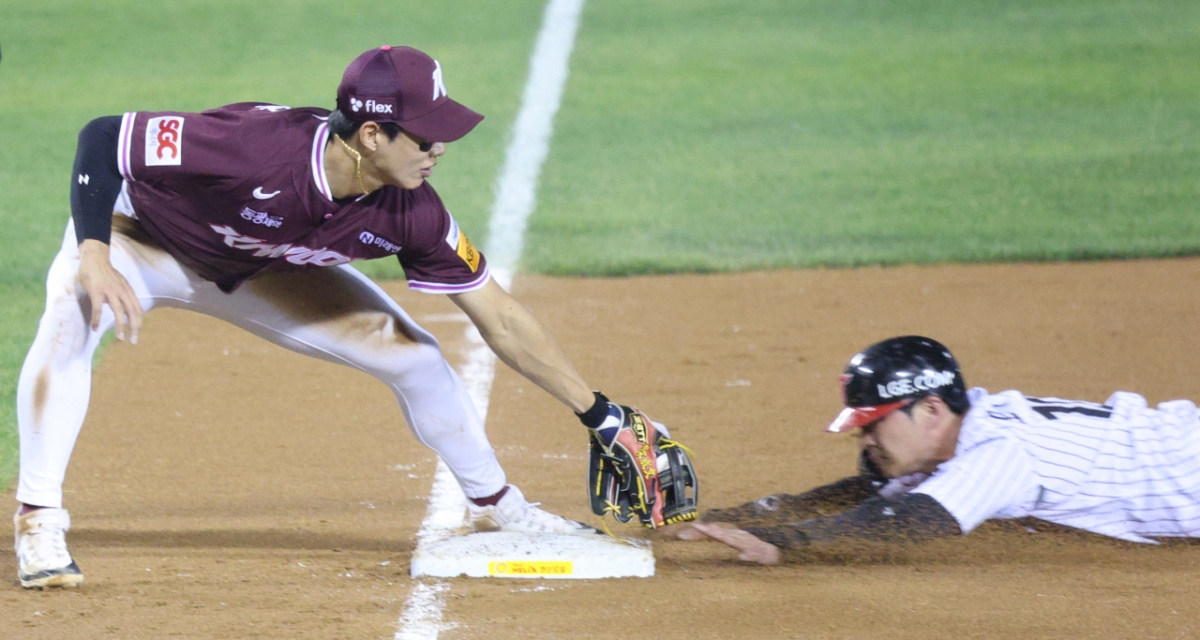2025 신한 SOL Bank KBO리그 LG 트윈스 대 키움 히어로즈 경기가 16일 잠실야구장에서 열렸다. LG 6회말 무사 1루 1루주자 오지환이 투구 폭투 때 2루에 이어 3루까지 내달렸으나 키움 3루수 송성문에 태그아웃되고 있다. 독자들의 PICK! "몇 명이랑 잤나 세어 보자" 장항준 19금 발언 파묘 "사랑해, 뽀뽀 쪽" 은퇴한 남편 녹음파일, 딸 결혼 앞두고 지인 13세 딸 성폭행 살해한 살인범 "동거녀 시체 안고 자" "딸 최진실 통장에 15억, 건물도 환희·준희에"...母, 유산 300억설 반박