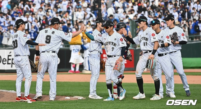KBO 리그 10개 구단 가운데 최근 10경기 성적이 가장 좋은 롯데다. LG가 최근 10경기에서 7승 3패로 승률 0.700을 기록했는데 롯데는 무승부가 한 차례 있어 7승 1무 2패로 승률이 0.778이다. 최근 10경기 승률은 롯데가 LG보다 1할 가까이 더 높다.