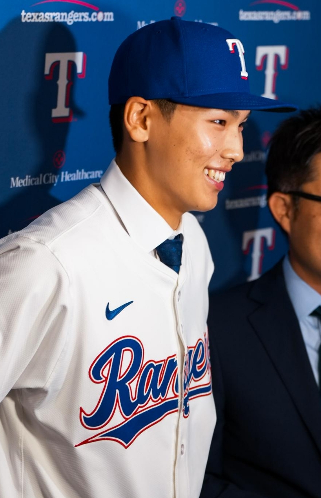 김성준은 이날 미국 텍사스주 알링턴에 위치한 글로브 라이프 파크에서 많은 관계자가 참석한 가운데, 공식 입단식을 치르며 각오를 밝혔다.