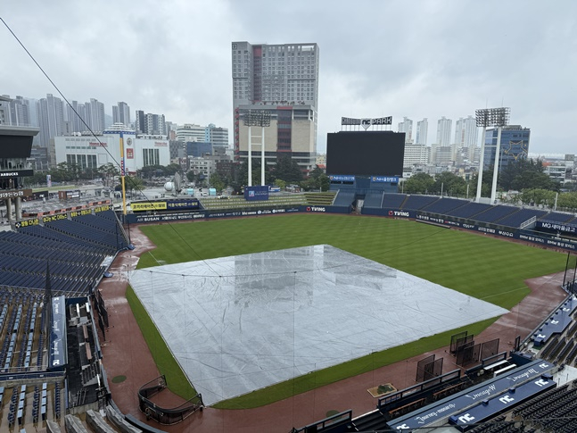 '낙동강 더비'의 3연전 첫날 경기는 정상적으로 열릴 수 있을까. 창원NC파크에 내리던 비가 그쳐가고 있다.