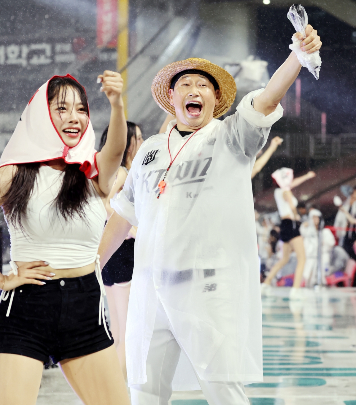 KT 김주일 응원단장과 이서윤 치어리더가 24일 수원KT위즈파크에서 열린 2025KBO리그 LG트윈스와 KT위즈의 경기에서 폭우가 쏟아져 6회초 수비를 마치고 경기가 중단된 가운데 열띤 응원을 펼치고 있다. 2025.06.24. [포토] '그만하자! 우리가 이겼다!' 김주일 응원단장 KT 김주일 응원단장과 이서윤 치어리더가 24일 수원KT위즈파크에서 열린 2025KBO리그 LG트윈스와 KT위즈의 경기에서 폭우가 쏟아져 6회초 수비를 마치고 경기가 중단된 가운데 열띤 응원을 펼치고 있다. 2025.06.24. 독자들의 PICK! 명문대 출신 걸그룹 멤버, 무속인 된 사연…"가족 죽는 꿈 꾸더니" "조갑경, 방송서 '아들 불륜' 나 몰라라…벌 받길" 전 며느리 분노 시부모엔 용돈 30만원, 친정은 불가…"네 월급으로 줘" 남편과 갈등 43세 여가수 임신에 "썩은 양수" 충격 댓글...18년 전 발언 '부메랑'