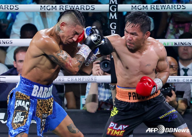 매니 파퀴아오(47·필리핀)는 20일(한국시간) 미국 네바다주 라스베이거스의 MGM그랜드가든아레나에서 열린 세계복싱평의회(WBC) 웰터급 타이틀전에서 챔피언 마리오 바리오스(30·미국)와 12라운드 공방 끝에 무승부로 승부를 가리지 못했다.