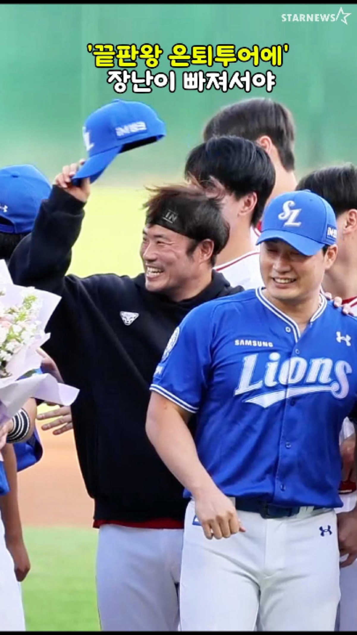 그런데 오승환 뒤에 서있는 SSG 포수 이지영의 모자가 눈에 들어온다. 한때 오승환의 볼을 받는 포수였던 이지영이 삼성모자를 쓰고 기념촬영을 하고 있다.