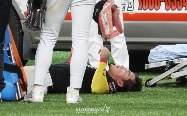 전날 KT는 고척 키움 히어로즈전에서 아찔한 순간을 경험했다. 양 팀이 2-2로 팽팽한 8회말 1사 1루에서 안현민이 루벤 카디네스의 타구를 잡으려는 과정에서 넘어지고 고통을 호소한 것. 안현민은 쉽게 일어나지 못했고 결국 구급차에 실려 병원으로 후송됐다.