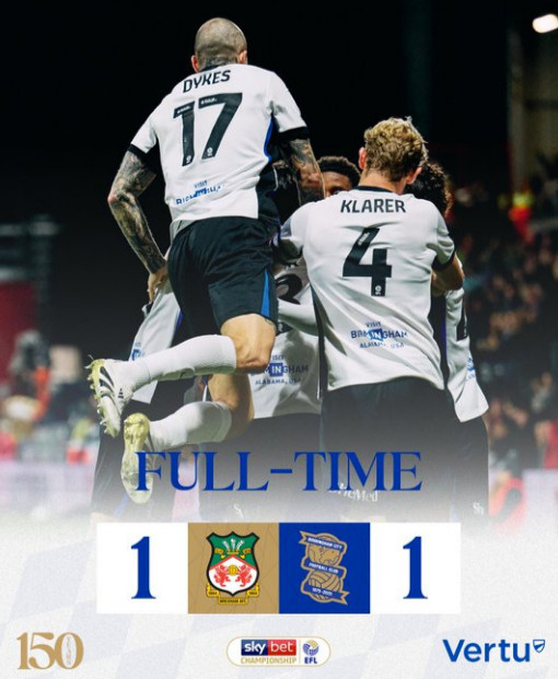 버밍엄은 4일(한국시간) 영국 렉섬의 레이스코스 그라운드에서 열린 렉섬 AFC와의 '2025~2026시즌 잉글랜드 챔피언십(2부 리그)' 9라운드 원정에서 1-1로 비겼다.